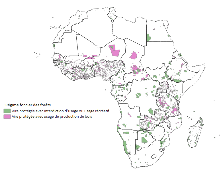 Figure 4 : Cartographie des statuts fonciers des forêts à partir de la recatégorisation de la base de données WDPA
