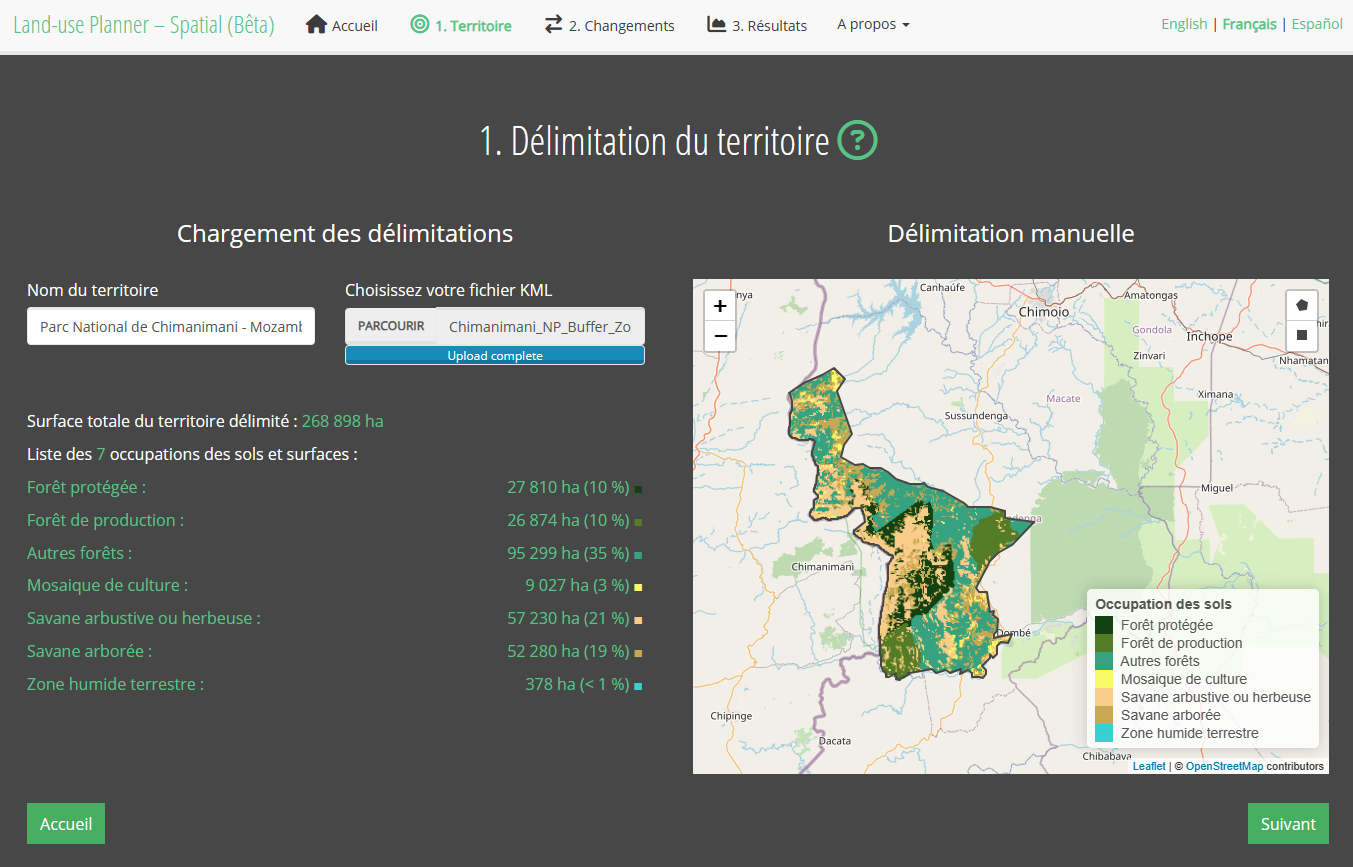 Deux options sont disponibles pour délimiter le territoire sur le Land-use Planner Spatial :